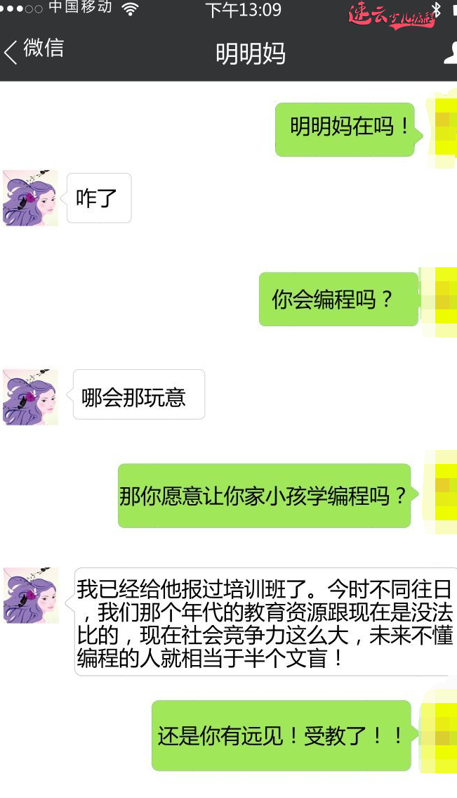 孩子有必要学编程吗? 我问了我一个朋友,对话如下: 综上所述,少儿编程是个非常重要的东西,当然实属开个玩笑。&