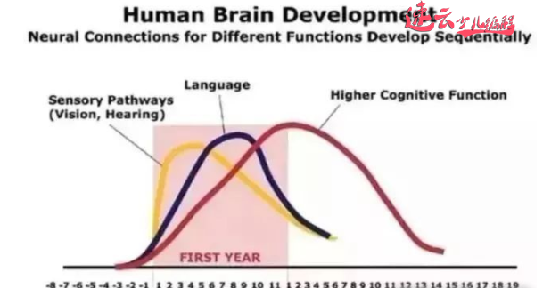 从哈佛大学儿童发展中心所发布的“人类大脑发展”曲线图中,我们发现,Higher Cognitive Function(更高认知能力,包括概念形成,解决问题,抽象思维,冲动控制,逻辑思维和创造力等能力)的